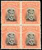 4d Head Die II, perf 14. Large part o.g. block of four in black and pale red-orange, lower pair unmounted. Full right printer's mark at centre. A few shorter perfs at right, but a very scarce multiple. SG 225b, AH 5