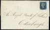 1841 2d Blue Pl.1. Entire sent from Greenock to Edinburgh bearing a 2d Blue (SG 5) lettered BC just touched at left and foot tied by a crisp, black distinctive Greenock MC. Spec. DS5cd. 1980 RPS Cert. Cat £6,000