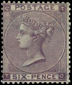 1864 6d lilac Pl.4. Very fine unused large part o.g. example lettered TC. Lovely colour and gum, scarce. SG85 Cat. £3000