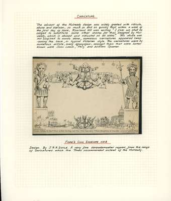 Mulready Caricatures. Very fine and clean group of seven Deraedermaker reprints for Southgate Caricatures Nos. 1-6 and Fores Civic Envelope No.8 (7 items).