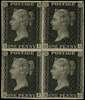 1865 1d Black Pl.66 ‘Royal reprint’ (Wmk. inverted). Superb unused large part o.g. four margin imperforate block of four lettered GF-HG. A very scarce multiple. Cat. £10,000. Spec. DP35a