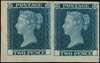 1841 2d Small Trial Two Pence in blue, horizontal pair with blank letter squares. Small toning at top of left hand stamp. Spec. DP43. Cat £3000.