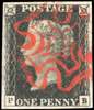 1840 1d Black Pl.1b. Superb used four margin example (PB) cancelled by a crisp red MC.