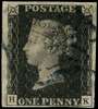 1840 1d Black Pl.5. Used good to large four margin example (HK) cancelled by a blue MC. Rare. Spec. AS25vc. 1994 BPA Cert. Ex. Victoria. Cat £8,000.