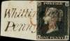1840 1d Black Pl.6. black ‘WHITTINGTON PENNY POST’ handstamp and a red MC
