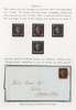 1840 1d Black Pl.6. Fine group of five adhesives containing four 1d blacks, three cancelled by crisp red MC's and one with a black MC as well an example used on cover all four margin Attractive group. (5)