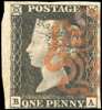 1840 1d Black Pl.7. Used example lettered BA cancelled by a red MC leaving a clear profile.