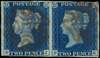 1840 2d Deep full blue Pl.1. Used four margin horizontal pair (PJ-PK) cancelled by red MC's. SG4. Cat £2500.