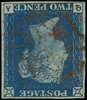 1840 2d Blue Pl.1. (Wmk Inverted). Used four margin example