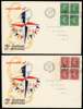 1951 (3 May) New Colours ½d to 2½d set of five in block of four used on individual illustrated first day covers