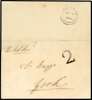 1840 (6 May) double-rate handstamped ‘2’ on large part wrapper to York used on the first day of the Penny Post and backstamped Chester ‘MAY/6/1840’; refolded otherwise fair
