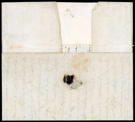 1840 1d Black Pl.1a. “May Date”. Entire sent from London to Richmond, Yorkshire bearing a four margin 1d Black Pl.1a. (HJ) tied by a smudged red MC with a London cds on reverse for MY.22.1840. Peripheral staining and faults yet a scarce May date entire. SG2, Spec. AS1th. Cat £2500.