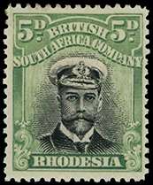 1913-7 5d Head Die I, perf 14. Fine o.g. example with R4/4 'waxed moustache'. Ex Hanks. SG 212a, AH 1 Var