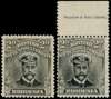 1913-7 2d Head Die II, perf 14. Two mint examples representing the Plate 4 (States 1 and 2) printings, each showing 'snowstorm in cap' variety. State 1 in the grey-black and (pale) blackish brown shade, State 2 a top marginal example with part imprint in the distinctive grey-back and 'tarnished silver' with the equally distinctive crackly brown gum. SG 220, AH 4 (B) and 5