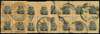 1913-17 3d Head Die II, perf 14. Three used blocks representing the Handbook #s 8-10. #8 block of four from Plate 5/State 1 with dull yellow-orange frame, Lusakas CDS; #9 block of four (R2-3/1-2) all without 'beta' flaws, showing doubling of coat contour line tips, Bulawayo CDSs; #10 block of eight with frame in monochromatic lemon-yellow (R5-6/4-7). SG 222-3 group