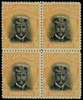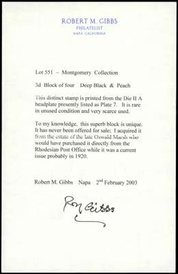 1917-20 3d Head Die IIIA, perf 14. Fine o.g. block of four in deep black and (pinkish) dull orange, the 'Peach'; lower left stamp with 'beta' flaw, full o.g. A unique multiple, ex Marsh, Gibbs, Montgomery, Baillie and Steinberg, with Gibbs account of its provenance (2003). SG 255c, AH 11