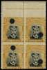 1918-21 3d Head Die IIIB, perf 14, toned paper, archival block of four from Plate 8 State 2, with imprint in upper margin and punched holes. Misperforated, resulting in the block being imperforate between stamps and upper selvedge, not found on issued stamps; ex Gibbs Lot 613, where it was not fully described. For SG 260, AH 13