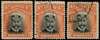 1913-7 4d Head Die I, perf 15. A fine o.g. example with large part o.g., and two very good used examples. SG 216