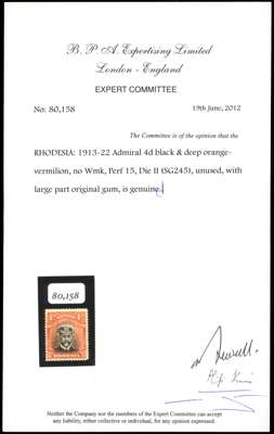 1913-7 4d Head Die II, perf 15. A very fine o.g. example, BPA Certificate (2012), ex Montgomery. SG 245, AH 2b