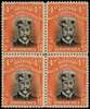 1917-20 4d Head Die IIIB, perf 15, white paper. Block of four in (jet) black and orange-red, unmounted o.g., showing full Plate 11 printer's mark between the stamps. SG 313, AH 14b