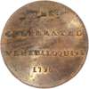 London - uncertain locality, Joseph Askins (ventriloquist), Jacob’s Halfpenny 1796, Man standing left with peg-leg, rev. four-line legend, edge diagonally milled, 29mm/9.43gm. (DH 252a). Good Extremely Fine with some iridescence and fair amount of original lustre, rare ‘R’.