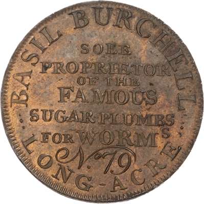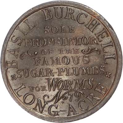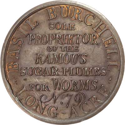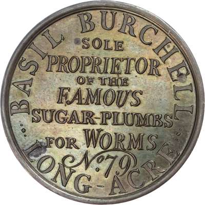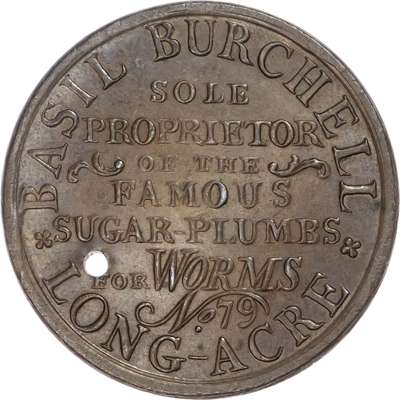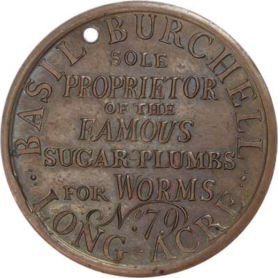 London - Longacre, Basil Burchell (medicine seller) Advertising Halfpenny undated