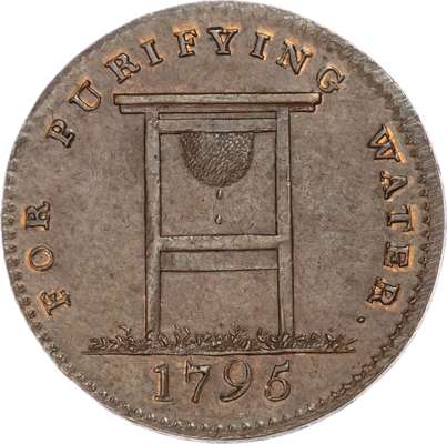 London - Coventry Street, Joshua Henderson (water purifier seller), Halfpenny 1795, Filtering stone set up, rev. Three-line legend, edge plain, 28mm/9.57gm. (DH 292). Another similar but minor spacing difference, 28mm/8.61gm. (DH 293). Both good Extremely Fine, first with full blazing mint lustre, second just a trace of lustre. [2]