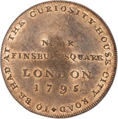facing, rev. Finsbury Sq. address, edge rounded plain, 31.25mm/8.97gm. (DH 317). Good Extremely Fine, a little weakly struck but with a lot of original colour, uncommon.
