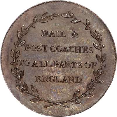 London Holborn, Christopher Ibberson (Coaching Inns owner) bronzed proof Halfpenny undated, St. George & dragon with large boar crest above, rev. Four-line legend in olive wreath, edge PAYABLE AT