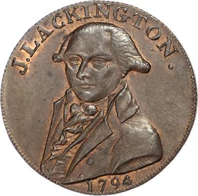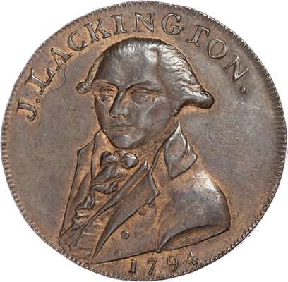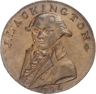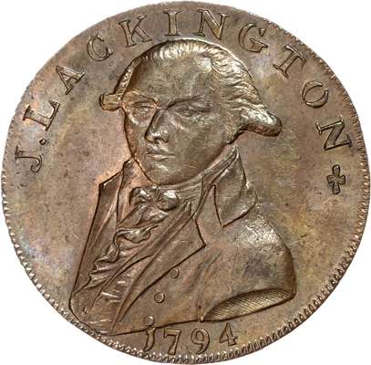 London – Moorfields & Finsbury Sq., James Lackington & James Allen (booksellers) Halfpenny 1794