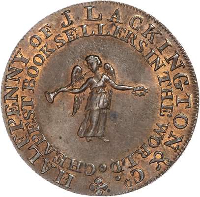 London – Moorfields & Finsbury Sq., James Lackington & James Allen (booksellers) Halfpenny 1794,