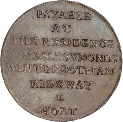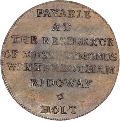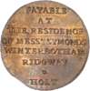 edge PAYABLE AT THE WAREHOUSE OF D. WRIGHT & BPALMER -x-, 29.5mm/9.53gm. (DH 396a).