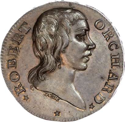 London - Soho, Robert Orchard, Skidmore’s Irish mule Halfpenny undated, Draped bust of Orchard