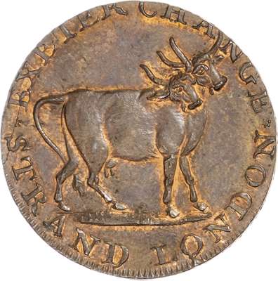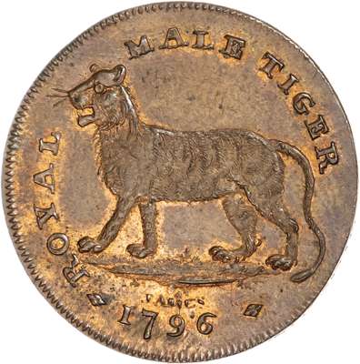 London - Strand, Gilbert Pidcock Halfpenny 1796, a tiger standing left, rev. a two-headed cow, edge SPENCE x DEALER x IN x COINS x LONDON x, 28.25mm/12.72gm. (DH 441). Good Extremely Fine with