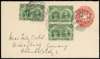 ½d SG 119 group, three on a postal stationery envelope to Germany