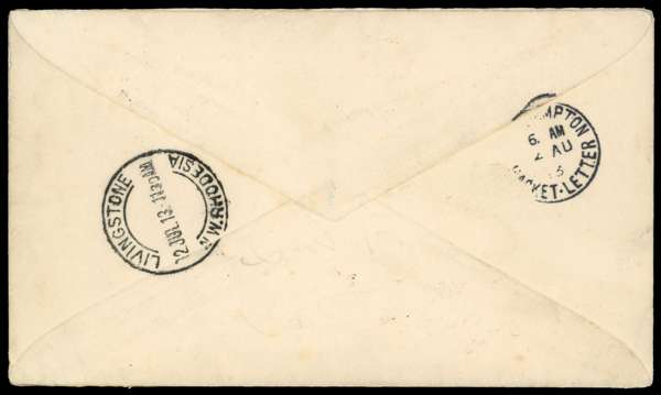 ½d dull blue-green horizontal pair on cover to Southampton, Mazabuka DCs 11 JUL 1913, Livingstone transit on reverse and Bitterne arrival on front