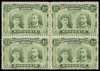 ½d emerald-green block of four, large part o.g., the upper pair each with ‘wedge’ flaw and showing upper frameline recut; the upper right stamp also with recut in left value tablet. Fine and rare. RJL 8