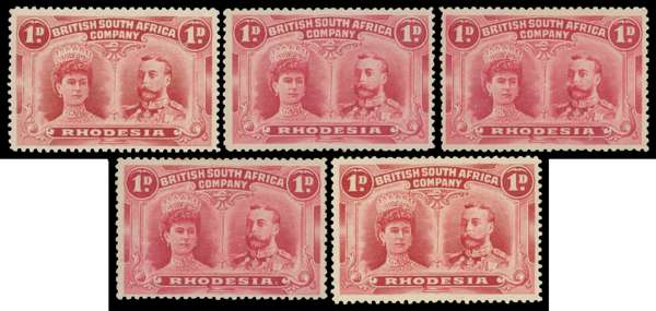 1d SG 123/5 perf 14 positions 71-5 'set' of OD flaws mint
