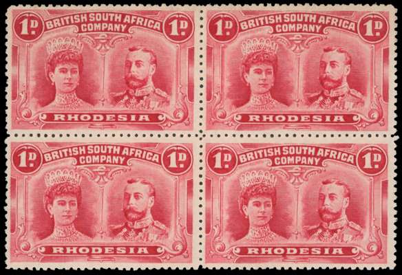 1d bright carmine block of four, positions 62-73. O.g., hinged on upper pair only, the right pair with a light gum crease. SG 123