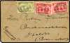 1912 (21 JUN) cover from Penhalonga to Germany, franked by 1910-13 ½d olive-green (SG 121, RJL 3) and 1d carmine-red x2 (SG 124), tied by individual fine to very strikes of ‘PENHALONGA / S. RHODESIA’ triple-ring cds (Proud type D3), a scarce commercial usage.
