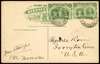 1910 (19 NOV) ppc ('Rainbow Falls, Victoria Falls') to USA, franked by 1910-13 ½d apple-green group x2 (RJL 6), tied by individual fine to very fine strikes of ‘VICTORIA FALLS / S. RHODESIA’ double-ring cds (Proud type D2), with message ‘New stamps, RHC Nov 10 1910’, minor edge wear on picture side, still a fine and attractive early usage