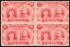 1910-13 1d bright carmine, perf 14, block of 4 (pos. 75-76/85-86), the upper left stamp with ‘OD’ flaw, large part o.g., pos. 76 with hinge thinning otherwise fine and scarce. SG 123