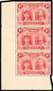 1910-13 1d carmine-red, perf 14, vertical strip of 3 from lower left corner, pos. 71 showing ‘OD’ flaw, fresh unmounted o.g. SG 124 group