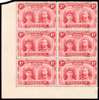 1910-13 1d carmine-red, perf 14, lower left corner block of 6 (2x3), the upper pair with ‘OD’ flaw, large part o.g. with the lower block of 4 remaining unmounted, a fine and attractive positional piece with lovely colour. SG 124 group