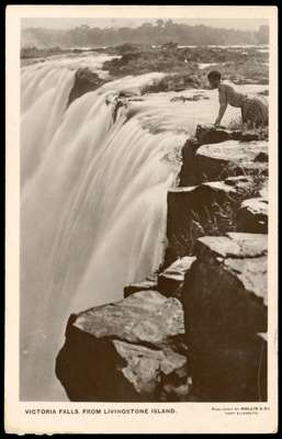 1910 (24 DEC) ppc ('Victoria Falls from Livingstone Island') used from Victoria Falls to England, franked by 1910-13 1d carmine-red (SG 124) tied by superb ‘VICTORIA FALLS / S. RHODESIA’ cds (Proud type D2), a fine usage.