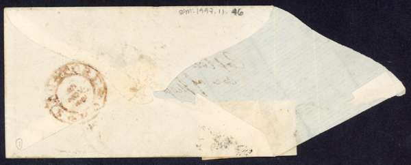 1857 (Nov) cover from Singapore to London, endorsed “Via Southampton” and franked (at lower left corner) by India 1854 2a green horizontal pair (the left stamp folded over and subsqequently opened for display) tied by several strikes of “B-172” octagon, with red “PAID” arrival cds alongside and indistinct Singapore backstamp; a scarce franking.