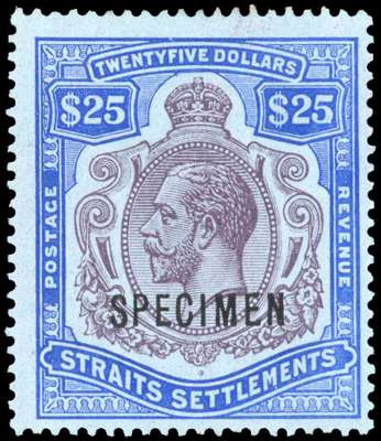 Straits Settlements 1912-23 $25 wmk MCA opt Specimen