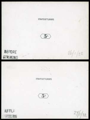 Straits Settlements 1922 5c die proof of country name and value BEFORE and AFTER STRIKING