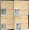 1903 (16 Apr- 4 May) set of four stamp-size die proofs for the 1903-04 issue in black on glazed card, on individual pieces (55 x 55mm) from the De La Rue day book with manuscript date and endorsement ‘240 leads + 6 extra’, and further dated in red ‘May 18th 03’ (indicating the invoice date). A unique and highly important quartet.