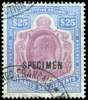 Straits Settlements 1906-12 $25 opt SPECIMEN and with Gabon receiving handstamps